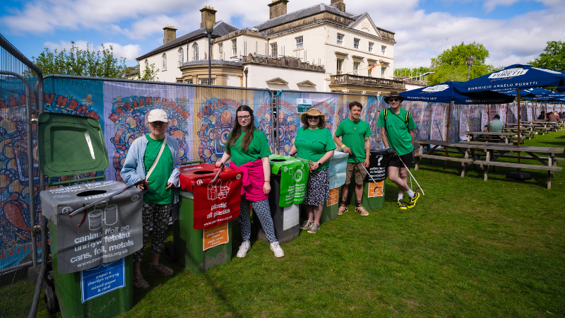 We’re continuing our partnership with the local community composting scheme, Criw Compostio, who collect compostable food waste from our food and drink traders as well as our volunteer kitchen and production office. This is turned into compost for horticultural projects in Machynlleth!